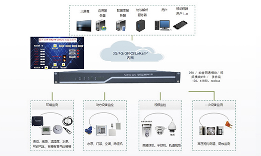 站端監(jiān)控包括各種探測傳感器、數(shù)據(jù)采集單元、無線無源測溫系統(tǒng)、局放在線監(jiān)測系統(tǒng)、門禁系統(tǒng)幾個部分。站端監(jiān)控安裝在配電室實時監(jiān)測現(xiàn)場實際環(huán)境狀態(tài)及各項參數(shù)如視頻明火、煙霧、人員非法入侵動物入侵、環(huán)境溫濕度、門禁、空調(diào)狀態(tài)、臭氣含量、開關(guān)柜母排溫度、開關(guān)柜內(nèi)局放等讀取二次電力設(shè)備監(jiān)控系統(tǒng)電量參數(shù)及報警事件信息通過通信網(wǎng)絡(luò)將現(xiàn)場各項參數(shù)及狀態(tài)上傳···